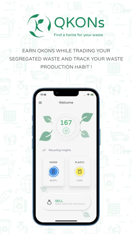 QKONS is a mobile application that makes it easier to transfer waste from waste producers to recycling companies. It helps users to separate their recyclable waste better and dispose of it in a more efficient and sustainable way. Additionally, QKONS rewards users for every transaction they complete.