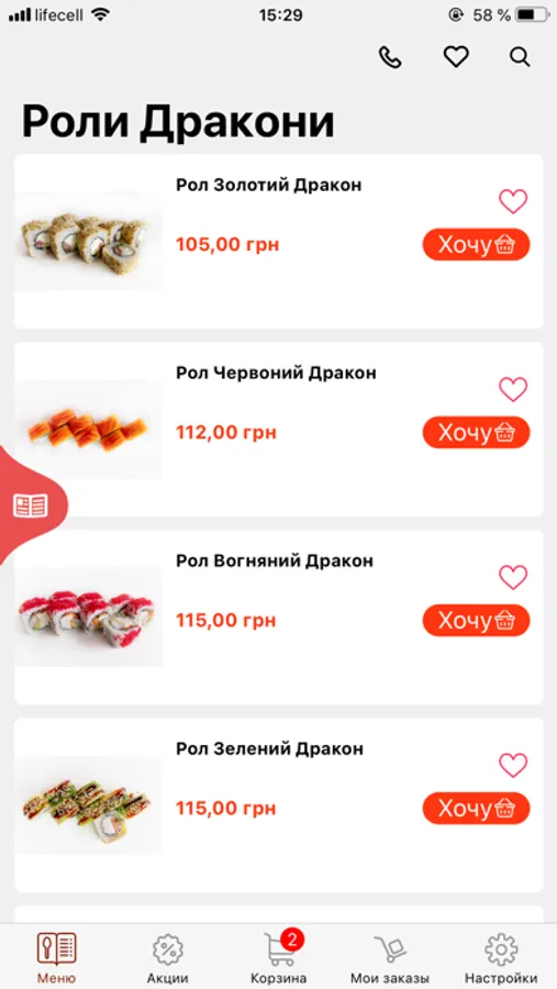 З додатком Золотий Дракон замовляти роли, сети, суші легко, оскільки в додатку доступні детальні описи і фотографії страв.