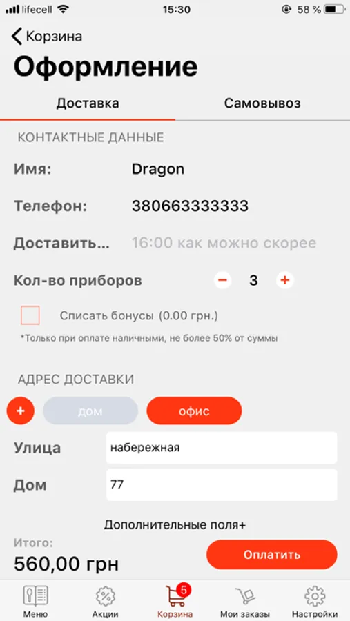 • встановити бажаний час доставки замовлення за вказаною адресою;