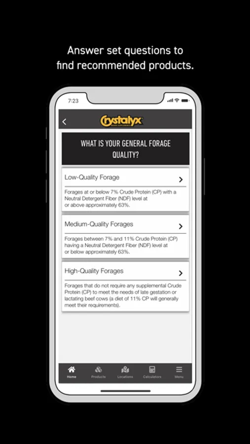 - Use as a tool to find the right CRYSTALYX product for your livestock feeding situation based on specie, forage quality and your desired level of fortification