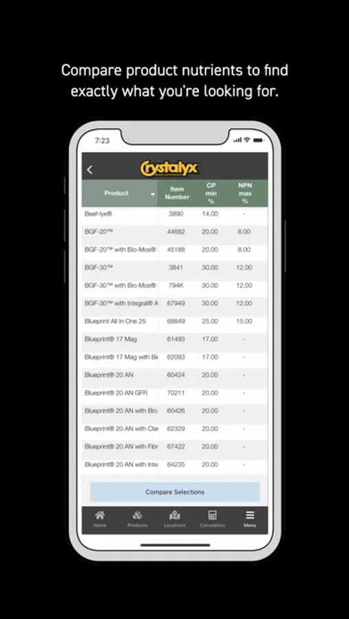 Are you a CRYSTALYX dealer? Use the CRYSTALYX Supplementation app as a tool to find the right supplement for your customers. Compare product nutrients, filter by product name, product number or nutrient levels and pinpoint CRYSTALYX products available with specific additives for your customer's convenience.