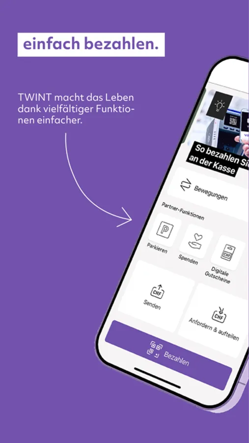 Bezahlen Sie im Onlineshop und an der Kasse, begleichen Sie Parkgebühren direkt mit dem Smartphone, überweisen Sie Geld in Echtzeit und vieles mehr. Dank der Kontoanbindung werden Transaktionen dem verknüpften Valiant Konto direkt belastet – ohne vorgängiges Aufladen von Guthaben. Ganz schön einfach!