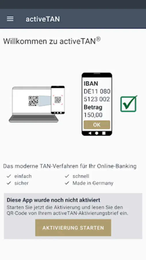 activeTAN is the safe and modern TAN-Process for your Online-Banking. With the activeTAN-App you can approve transactions comfortable on your Smartphone.