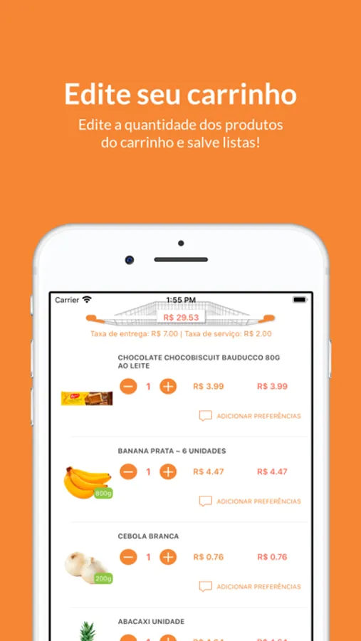 • Adicionar produtos no seu carrinho com um simples tocar e arrastar.