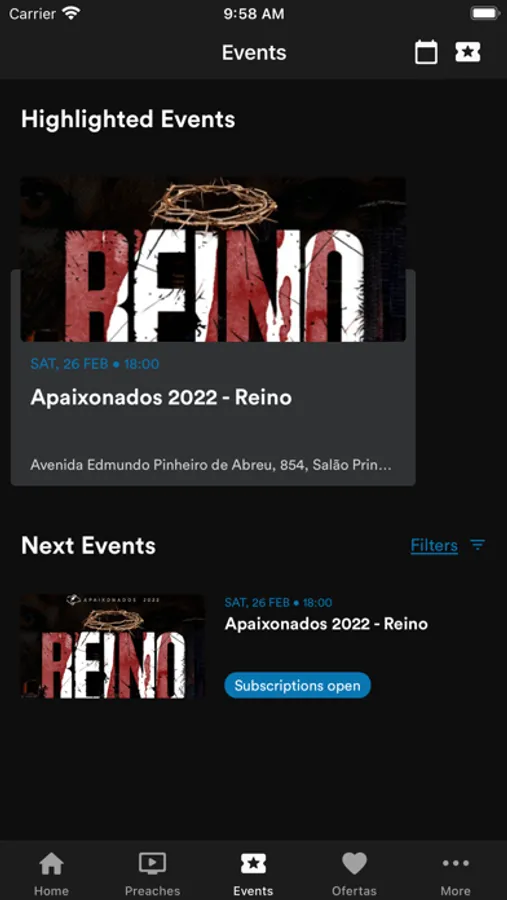 - Siga a agenda e fique por dentro de tudo que acontece na igreja, inscreva-se em eventos e tenha seus ingressos sempre com você.