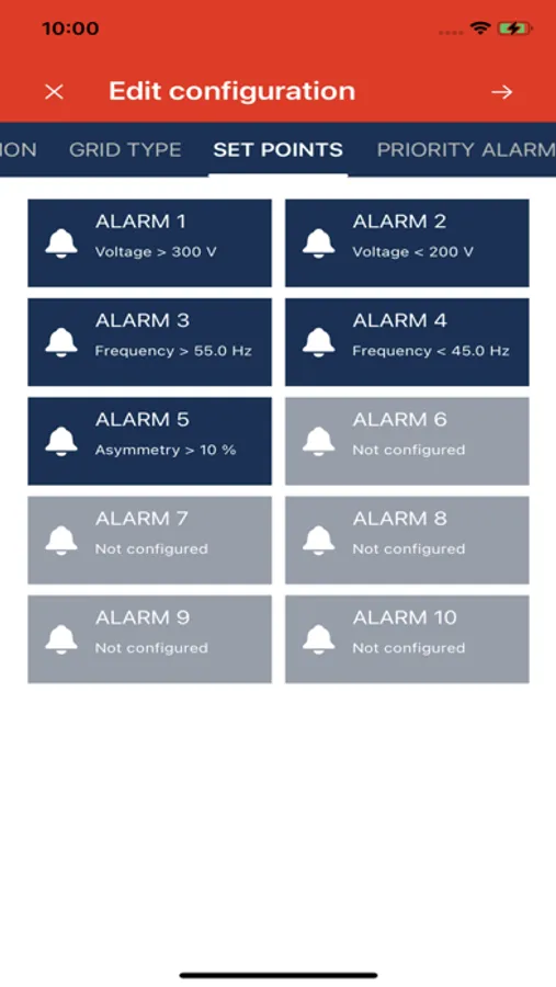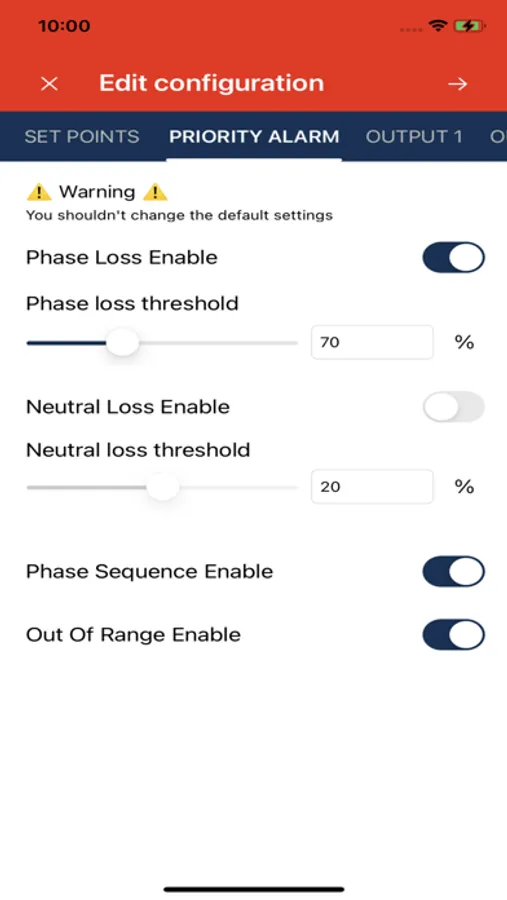 DPD three phase monitor relay is supplied with factory settings for the alarms and the thresholds. If the factory settings are not suitable for own use the DPD Configurator allows to set own parameters and to send them to the relay once finished.