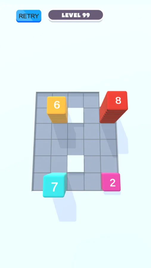 In Stack Blocks you have to fill the empty squares with colored blocks. This is done by stacking in the right direction. It starts easy but gets harder as you level up!