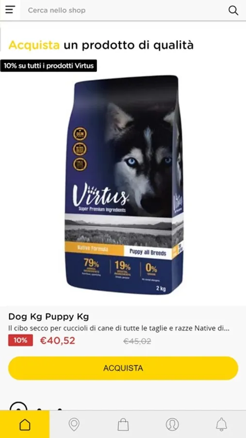 Acquista online direttamente dal tuo smartphone il prodotto giusto per te e per il tuo pet nell’offerta di oltre 20.000 articoli tra cibo, giochi e accessori per cani, gatti, uccelli, pesci e piccoli animali come conigli e roditori.