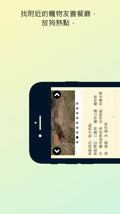 手機應用程式內有寵物資訊地圖,地圖內標記包括放狗熱點,寵物診所,寵物餐廳等資訊供用家,用家可以就有關設施進行評價留言,而地圖亦會有導航功能。