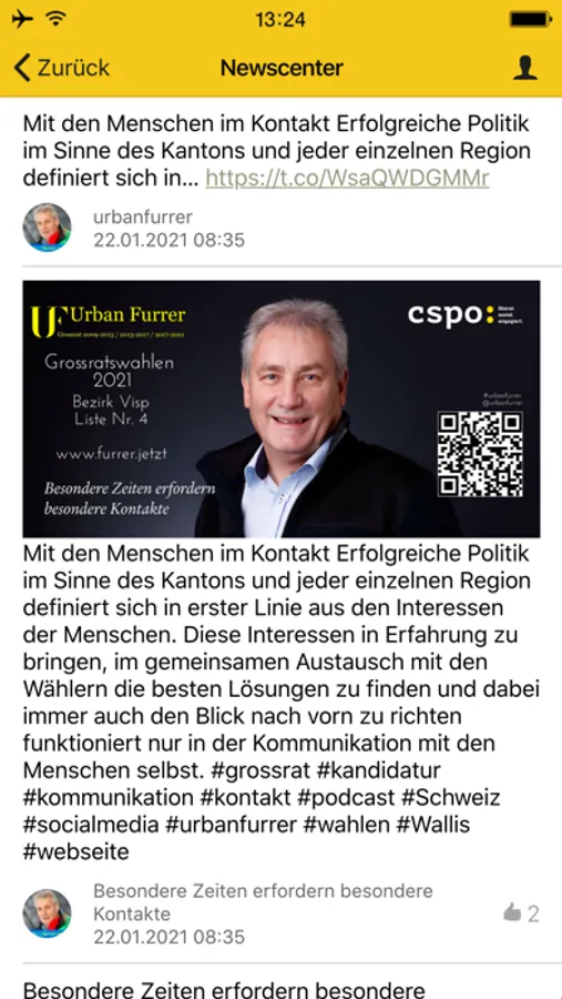 Politik lebt vor allem von Taten. Zur Grossratswahl 2021 möchte ich, Urban Furrer, als Ihr Kandidat zum vierten Mal zum Grossrat gewählt werden. Damit wir gemeinsam an gemeinsamen Zielen arbeiten können.