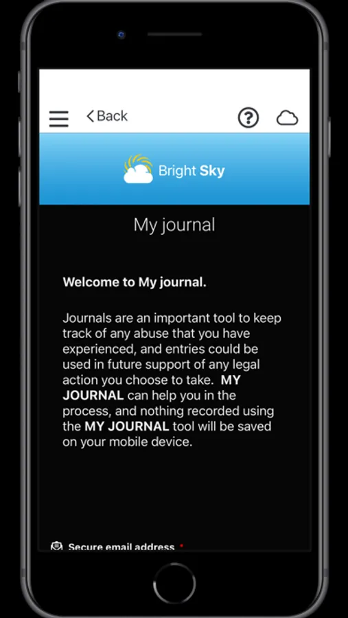 *Before using the app’s My Journal tool, make sure that you have an email address which is safe and that nobody else has access to. If you need to, you can set up a new one or use the email address of someone you trust.