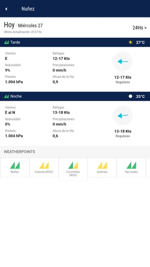 Meteorología en tiempo real y pronóstico en distintas áreas de interés (posición actual o en la posición que elijas en pantalla). Alertas meteorológicos por mensajes.