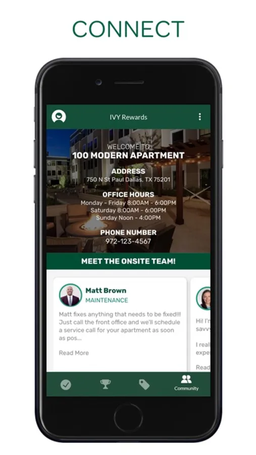 Download to create an account or log in using the email address given at move-in and start earning points today!