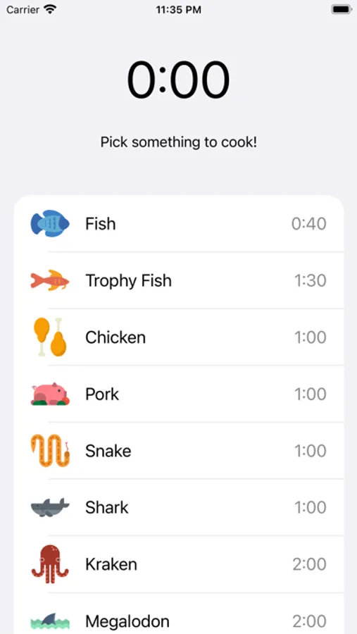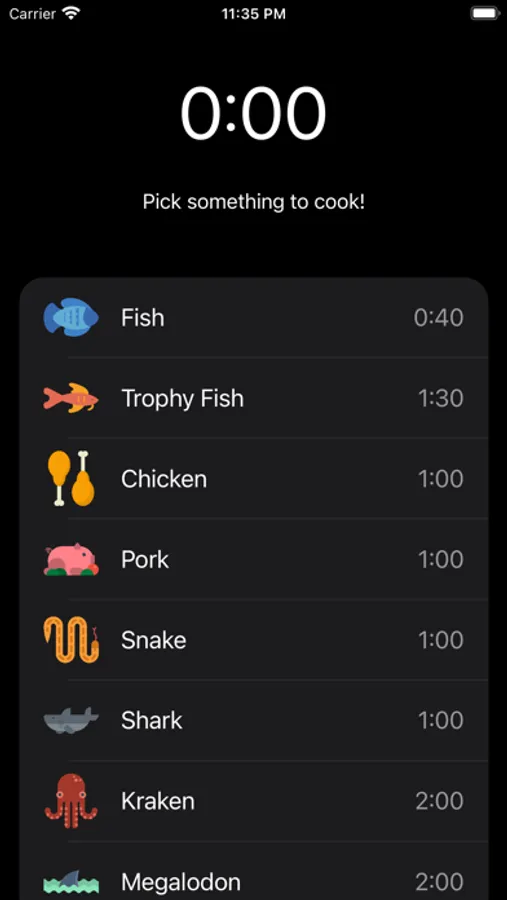 Has a list with all the types of food. Sends you a notification when the timer is finished.