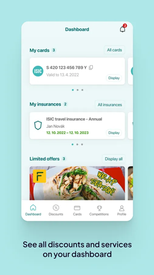 You will activate a digital version of your ISIC, ITIC, IYTC, Alive and AliveID card by signing into the app. You can manage your details, discounts, and competitions in your profile.