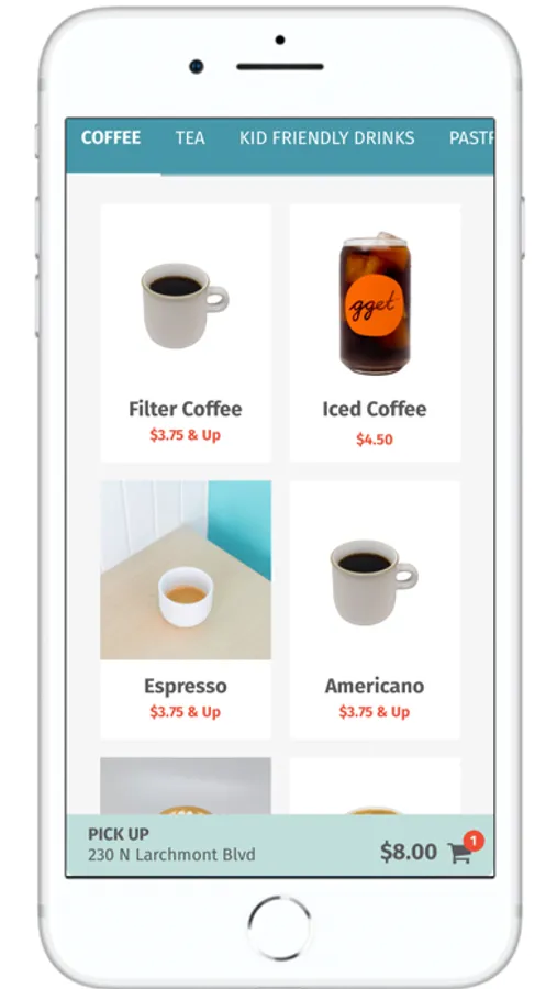 Build and customize your GGET drinks and food or reorder your favorite items, and set up payment for easy checkout. Skip the line and head straight to the pick up station once your order is ready.