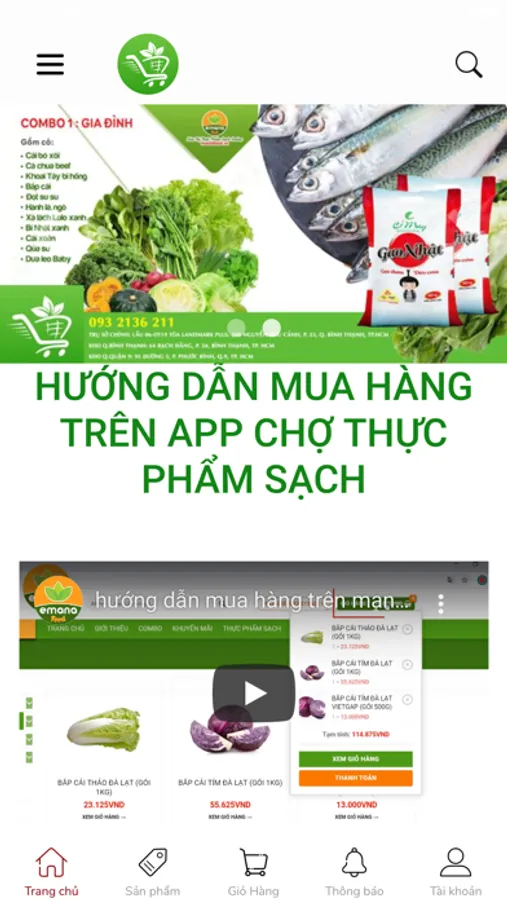 Chợ Thực Phẩm Sạch is an online shopping application.
