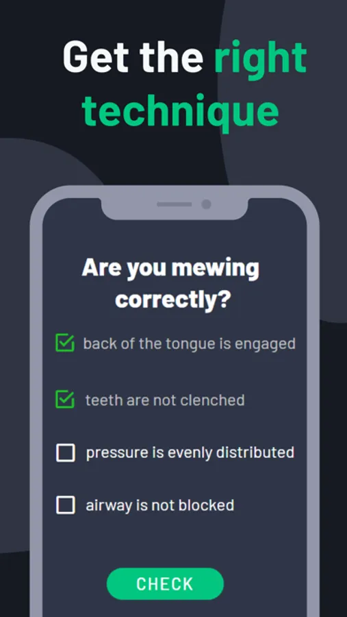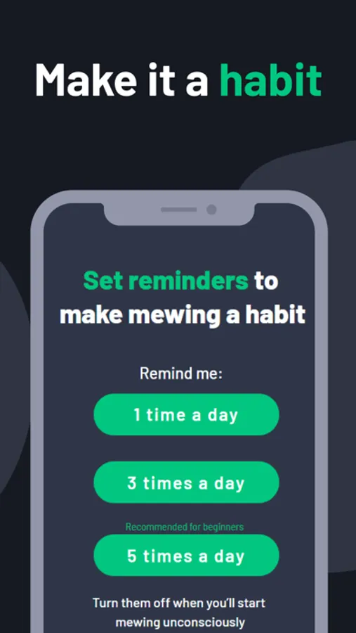 The purpose of the app is to help you make the correct mewing technique a habit, so that you can achieve results in the shortest possible time.