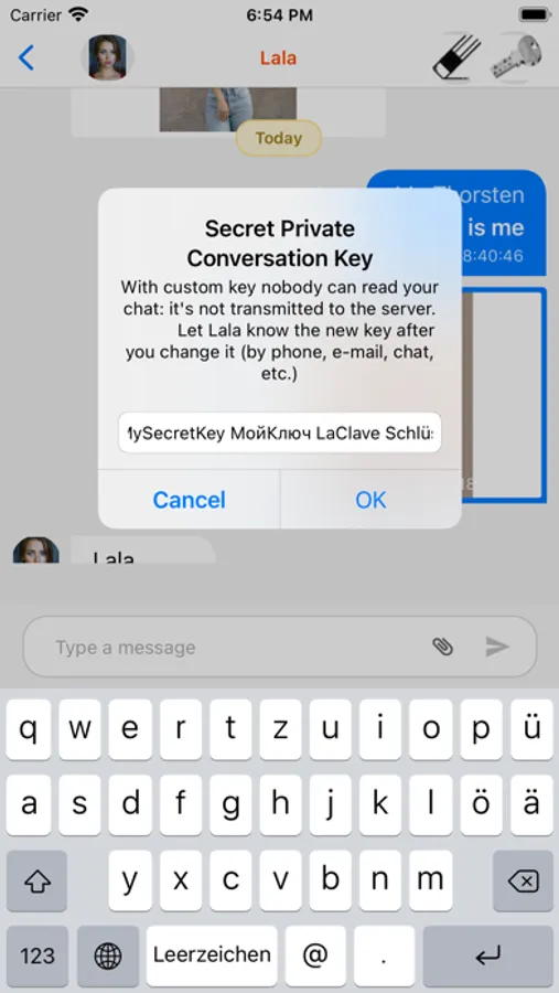 - Using a key you can easily encode your chat. This is the way to have private conversations that won't be seen by your husband or your wife, your parents or authorities. Also photos will be encoded as well!