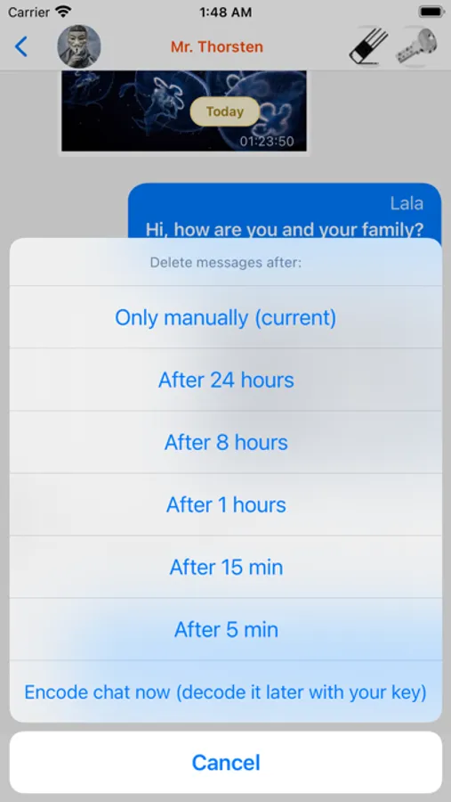- Very easy to delete messages, from both, yours and your counterpart devices. You can also set how long a message will live before it will be automatically deleted.