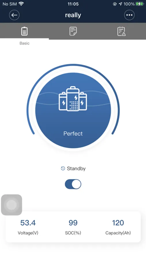 * Displays State Of Charge (SOC) percentage with circle graphic.