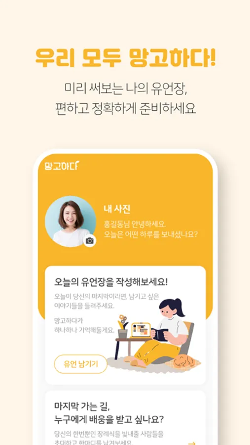 망고하다와 함께 유언을 작성해 어제를 돌아보며, 내일을 계획하세요.