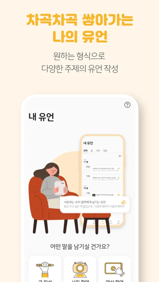 ○ 망고하다에서 유언장을 준비해보세요! 글, 사진, 영상으로 남길 수 있어요.