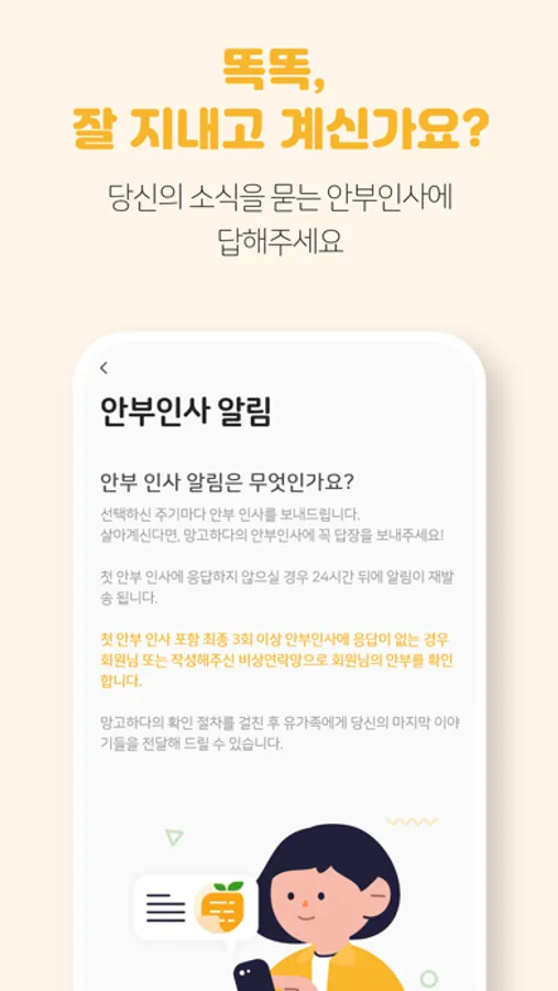 ○ 안부인사 알림을 통해 유언장을 전달해드립니다.