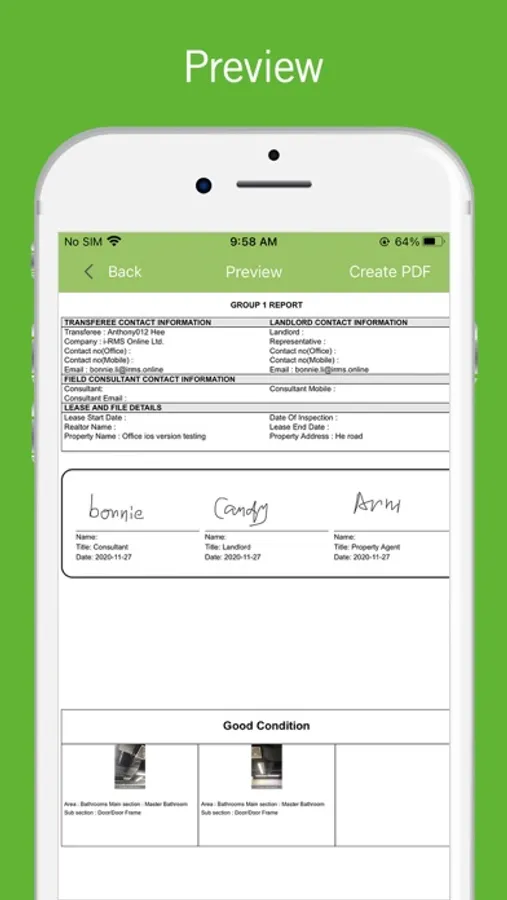 The i-RMS Photo App allows users to take photos, record whether the item being photographed is in good or poor quality and mark the areas of issue with written remarks. Photos are time stamped and are securely stored on the app so they cannot be viewed in the device album or outside of the i-RMS system. When photos are synced to the i-RMS system users can quickly select specific photos and generate a report.