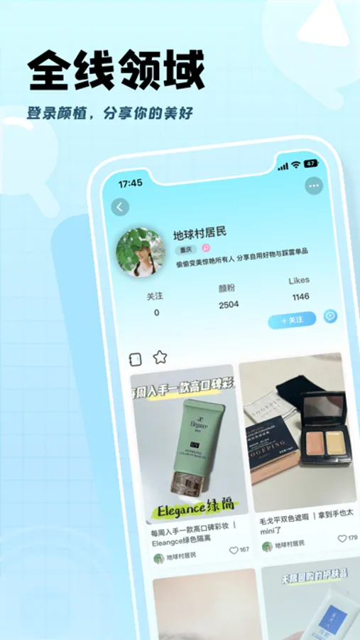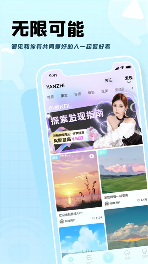 颜植是一款涵盖动漫,护肤,直播,摄影,旅游,美食,运动健身,科技,穿搭,vlog 视频的种草平台