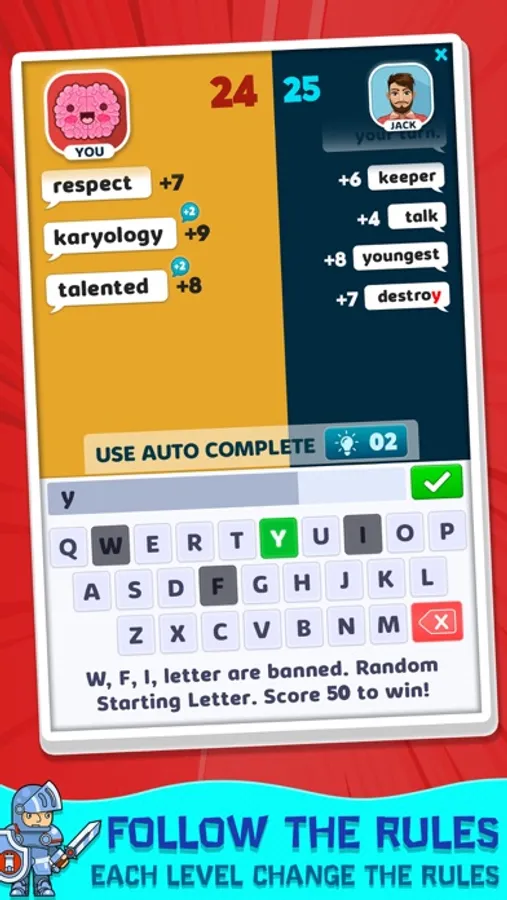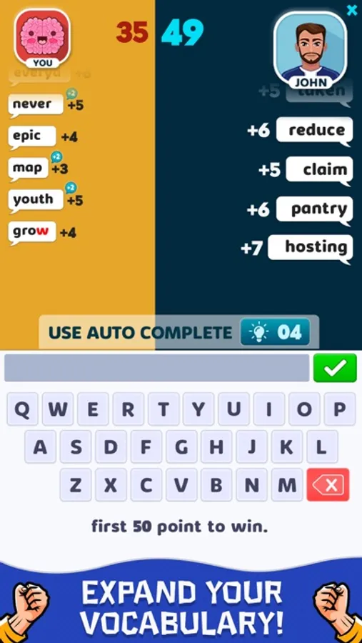 Type word bigger than your opponent and achieve your target.