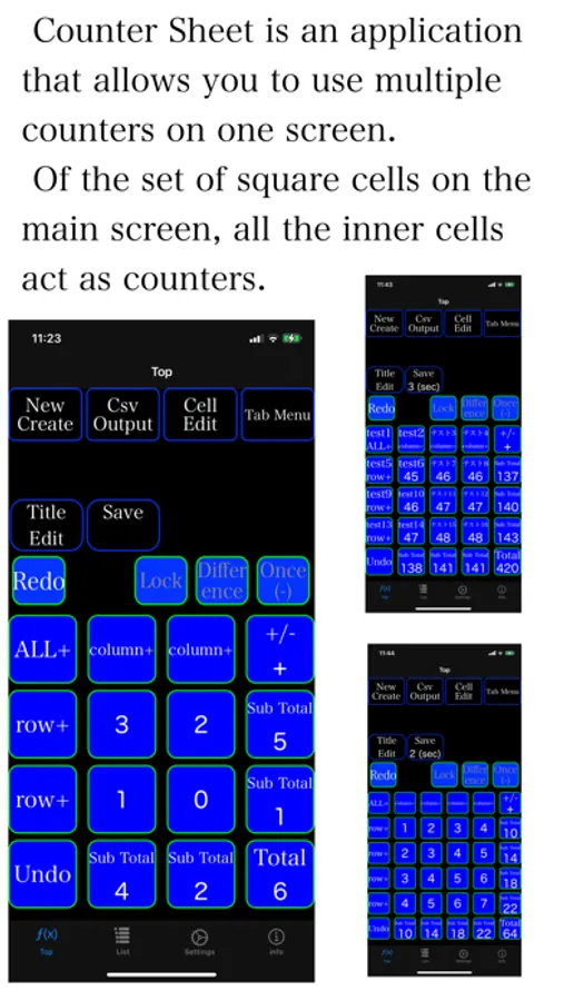 Since multiple counters can be handled like spreadsheet software at the same time, the following usages are possible.