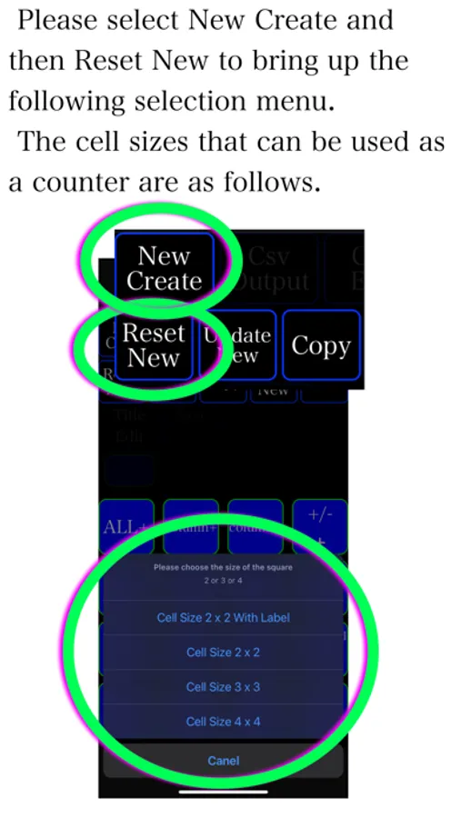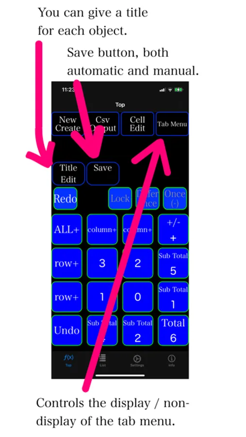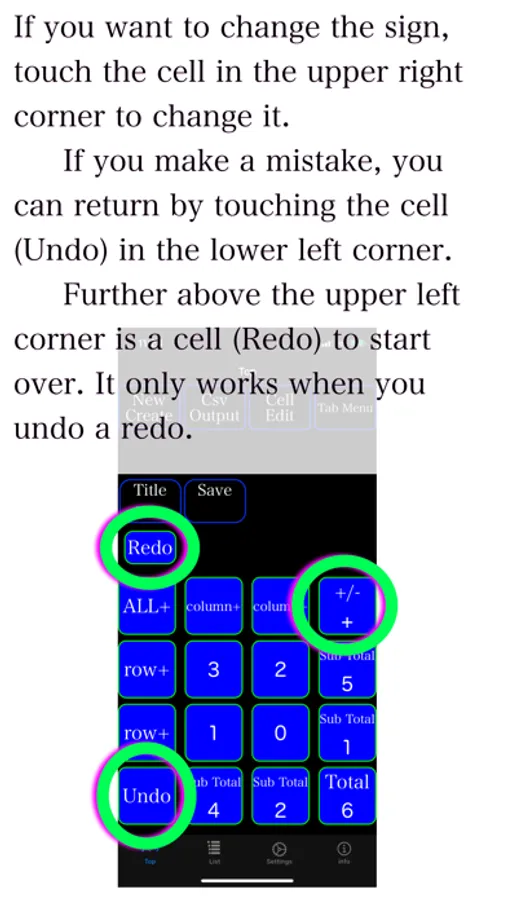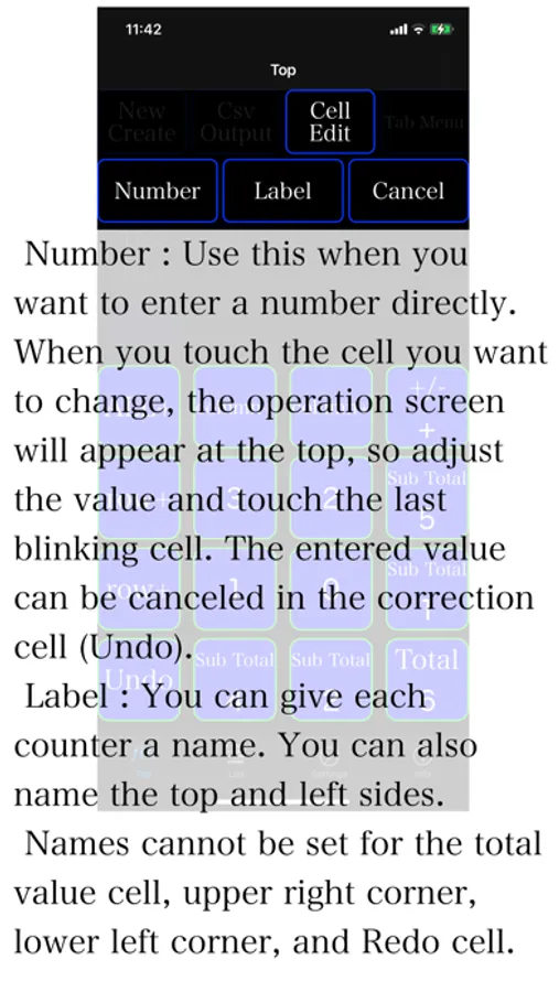 Number Use this when you want to enter a number directly. When you touch the cell you want to change, the operation screen will appear at the top, so adjust the value and touch the last blinking cell. The entered value can be canceled in the correction cell (Undo).
