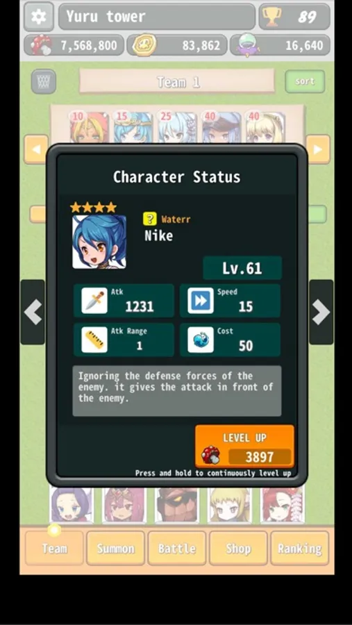 It is a tower defense game that summons characters with characteristics such as time stop and attack power up to prevent the invasion of enemies.