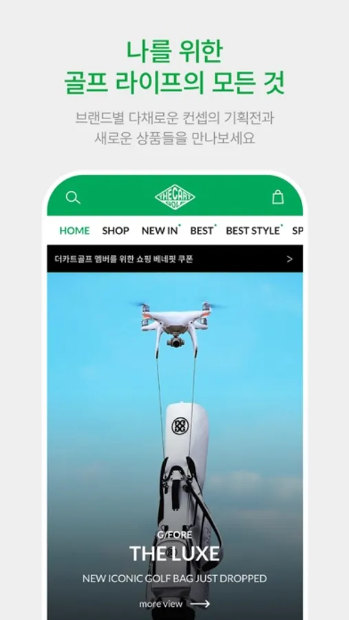 유니크하고 트렌디한 골프 셀렉트숍을 모바일앱으로 만나보세요. 회원 가입과 함께 10% 할인쿠폰을 바로 사용하실 수 있습니다.