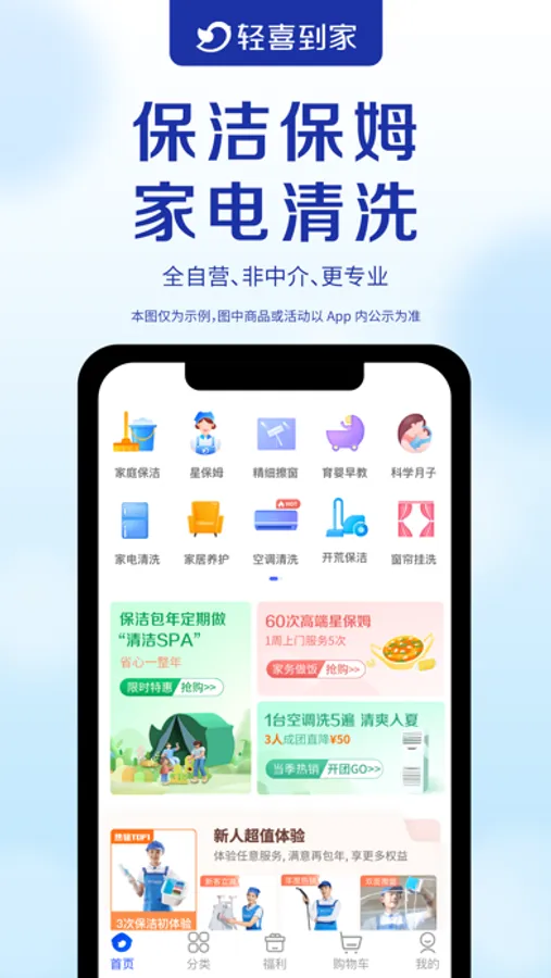 以“全自营、非中介、更专业”为特点,提供专业优质、有保障的到家服务。