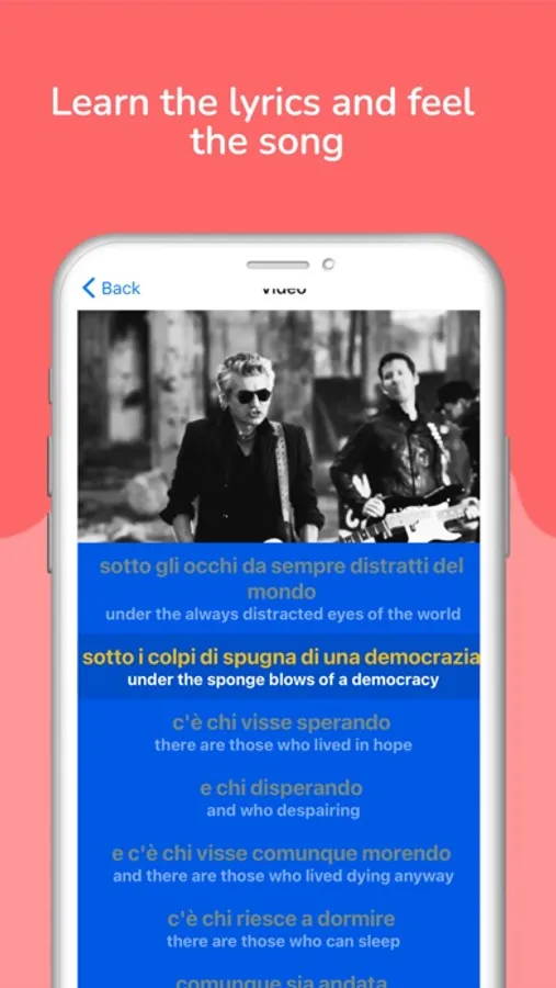 • karaoke mode. Lets you sing a long while reading the translation of the lyrics in your own mother language.
