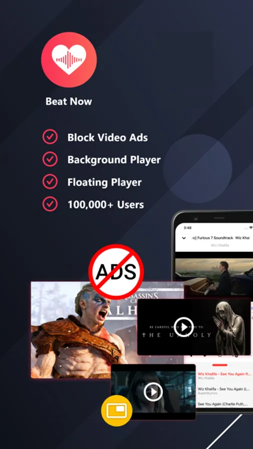 Beat Now is a free application developed based on the need to completely remove ads from watching videos on Youtube.