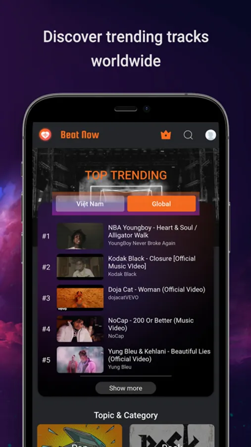 Not just searching for videos, Beat Now recommends you the popular videos both in Vietnam and international