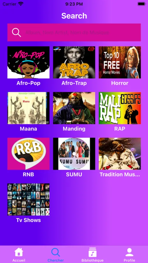 · Des différents genres de musique: Rap, Afro-Pop, Afro-Trap, RNB, Sumu, Djeli-Sumu et plein d’autre