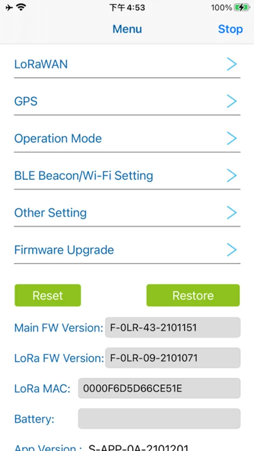 - Basic Information: LoRa MAC/ FW version/ APP version