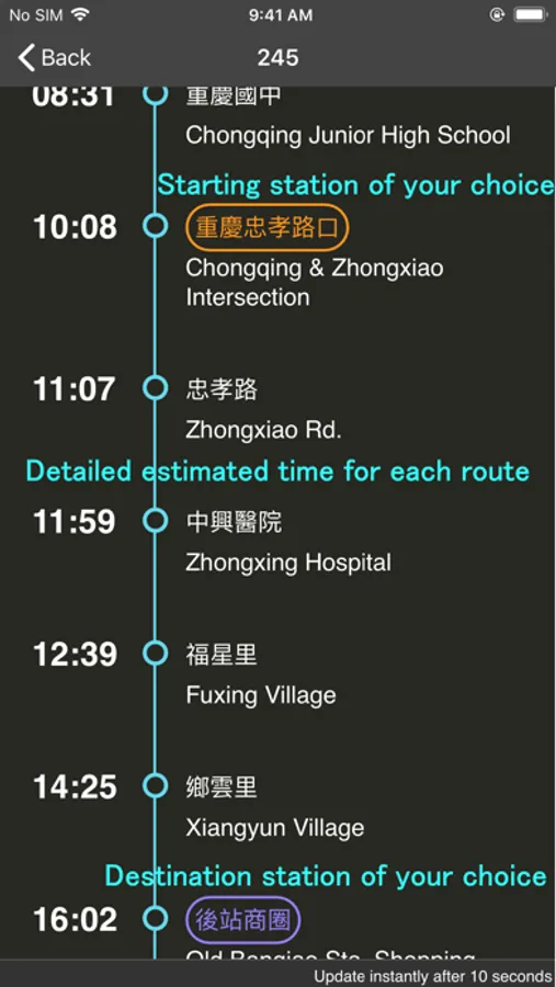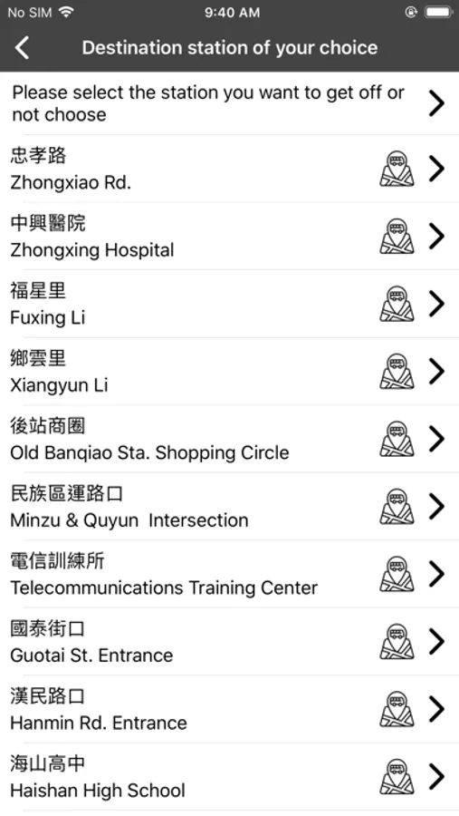 Currently only available in Taipei area bus information.