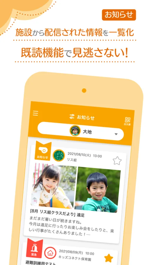 子どもと大人が笑顔でつながる保育ICTシステム"KidsDiary"の保護者向けアプリです
