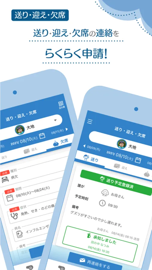 ・保護者それぞれのスマホで使えるので管理がらくらく