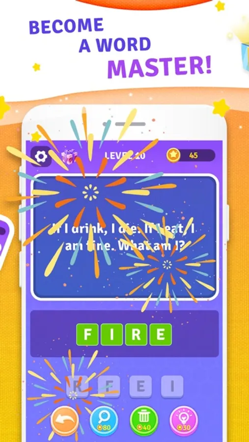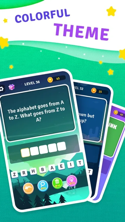 - Use hints will help you solve the word riddles.
