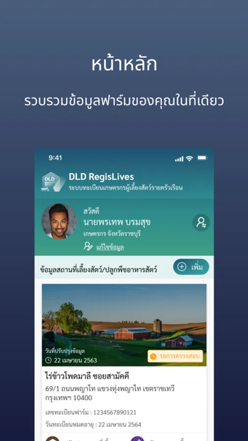 แอปพลิเคชัน DLD e-Regist จาก กรมปศุสัตว์ไทยเป็นแอปพลิเคชันสำหรับ ลงทะเบียน บันทึก อัพเดต ข้อมูลทะเบียนเกษตรกรไทย ข้อมูลฟาร์ม ข้อมูลการเลี้ยงสัตว์ และข้อมูลจํานวนชนิดสัตว์ภายในฟาร์ม โดยแอปพลิเคชันนี้เหมาะสำหรับเกษตรกร เจ้าหน้าที่ สำหรับบันทึกข้อมูลและเก็บประวัติการอัพเดตข้อมูลของเกษตรกรไทย