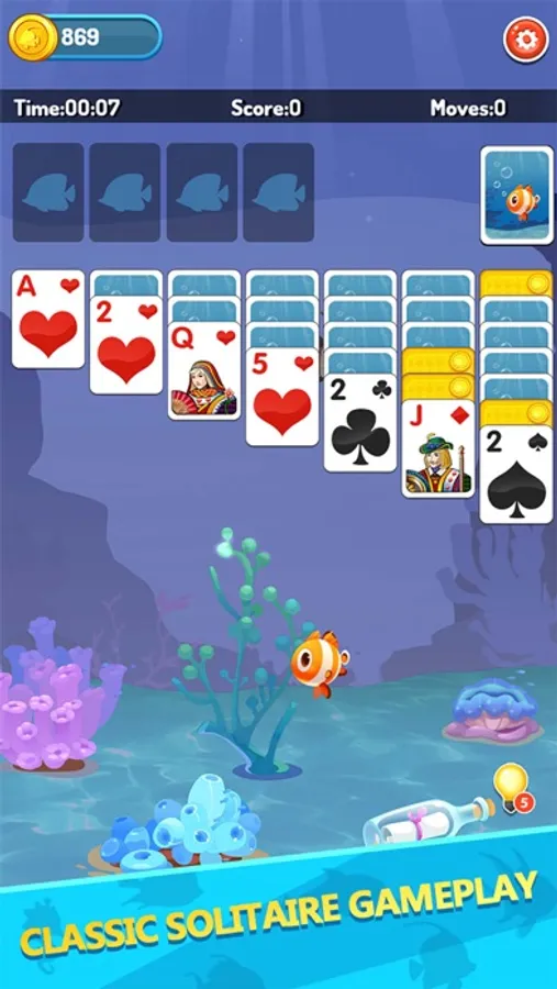 Solitaire Fish Farming uses only one deck of cards for the game, a total of 52 cards, these cards face up, arranged in eight rows. Create four stacks of cards by moving the cards in the following eight columns: