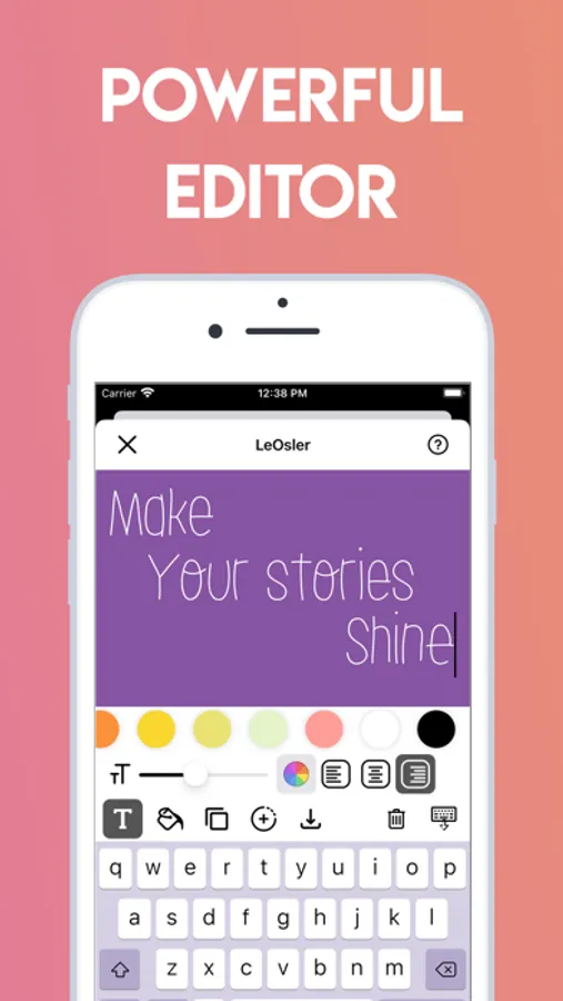 When you copy text to Insert to Instagram, as well when you create a Story or Download text as a sticker to your Photo Library, this text is being added to History (the 3rd tab). You can always come back to the preferred combination of text and background you have used once. Also in History you can find Quick Actions: just swipe text to the left and you will see Copy, Make Story and Delete buttons.