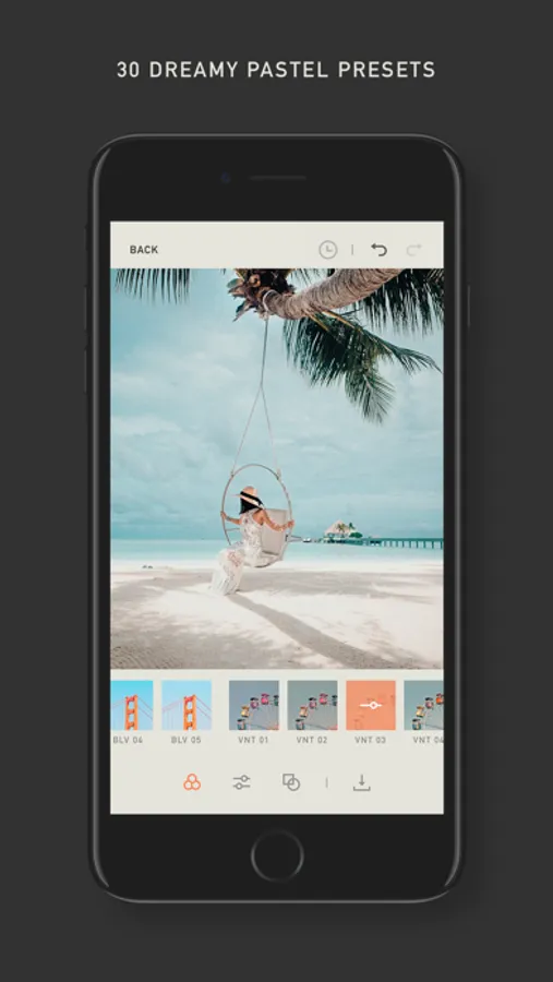 Pastelgraf offers 30 pastel-toned presets, each with its own unique colorway and vibrancy. Each filter brings dreamy tones to any edit.
