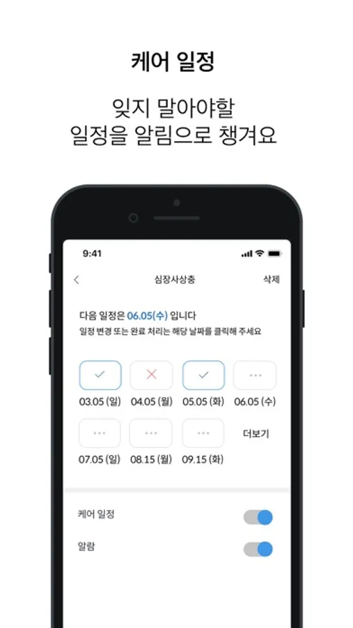 - 자주보는 노트와 이번주 케어 일정을 한 눈에 확인하고 관리해요